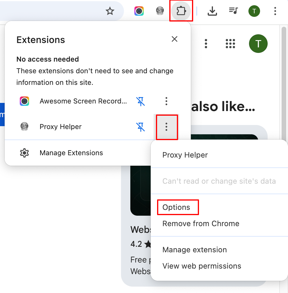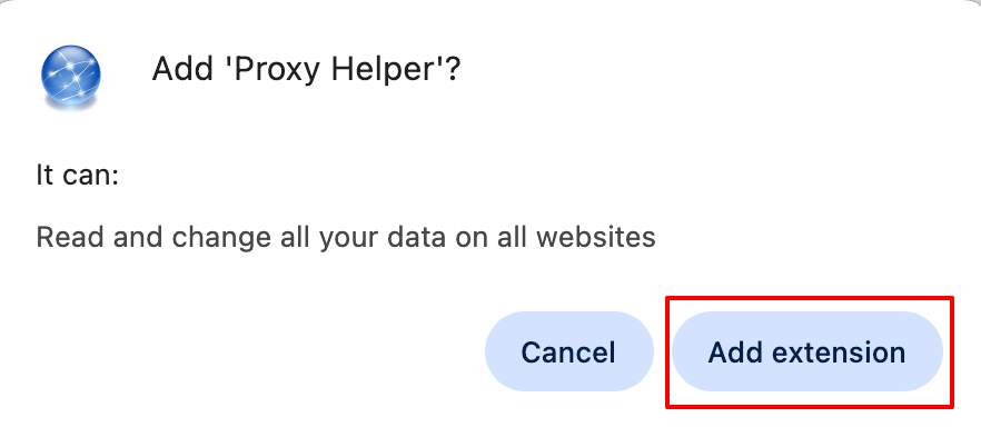 After installation, the Proxy Helper icon will appear in your browser toolbar.
