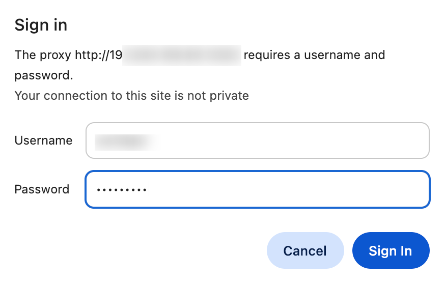 - A pop-up will appear asking for your proxy username and password